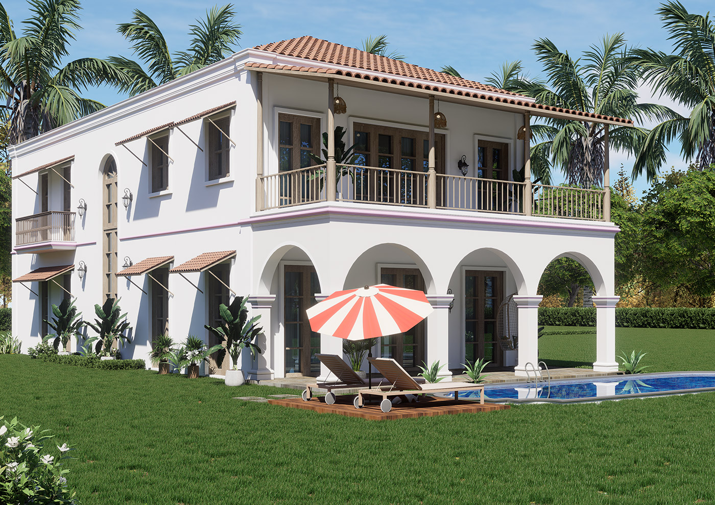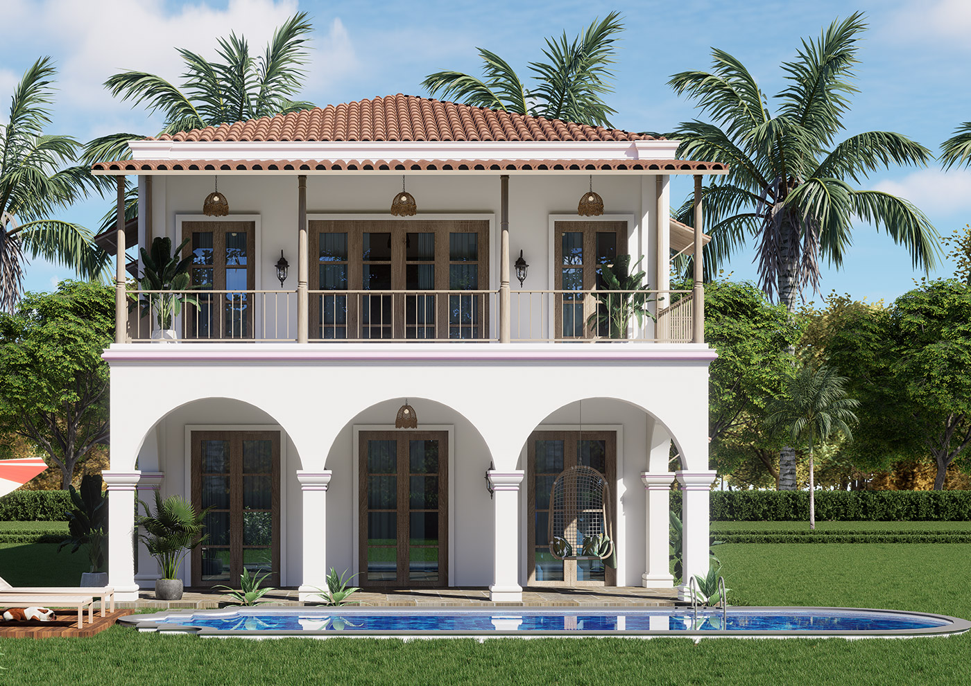 The design reflects a timeless Goan character, with elegant verandas, soft arches, and a warm, earthy palette that blends seamlessly with its surroundings. Inside, generous living spaces unfold with a natural flow, creating openness while maintaining complete privacy. Every transition—from indoor lounges to outdoor terraces—is thoughtfully crafted for both everyday comfort and relaxed entertaining. Fully equipped and carefully detailed, the villa features a private swimming pool, landscaped garden, and multiple outdoor zones that extend the living experience into nature. Premium finishes, integrated kitchen appliances, and Villeroy & Boch bathroom fittings ensure every element feels refined and complete.