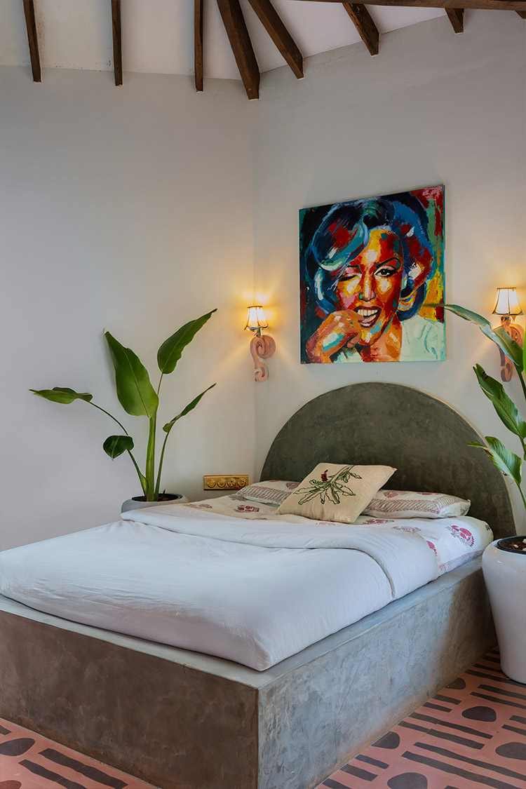 Set in the leafy lanes of Anjuna, Villa M is a standalone 3BHK residence shaped by Portuguese architectural cues, think tiled sloping roofs, arched entryways, and a façade that nods to Goa’s colonial past. Designed as a quiet escape, the villa comes fully furnished and move-in ready, with custom interiors, a private pool and a landscaped garden.